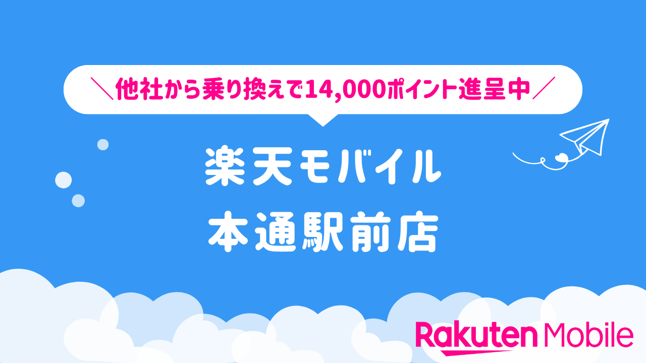 楽天モバイル 本通駅前店 – 他社から乗り換えで14,000ポイント進呈中!
