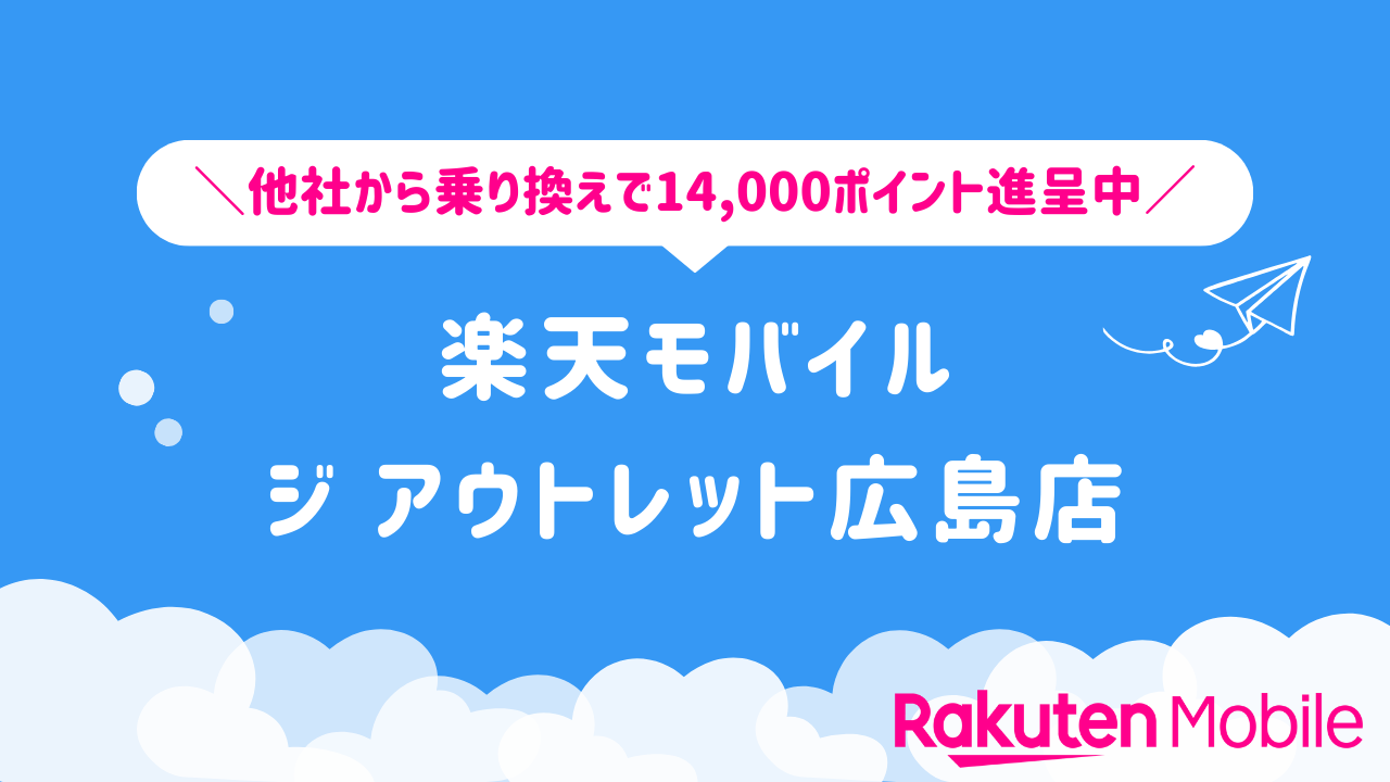 楽天モバイル ジ アウトレット広島店の店舗情報をわかりやすく整理しています。他社から乗り換えで14,000ポイントをゲットできるキャンペーンや、店舗限定で利用できる特典などの情報も合わせてご紹介いたします。