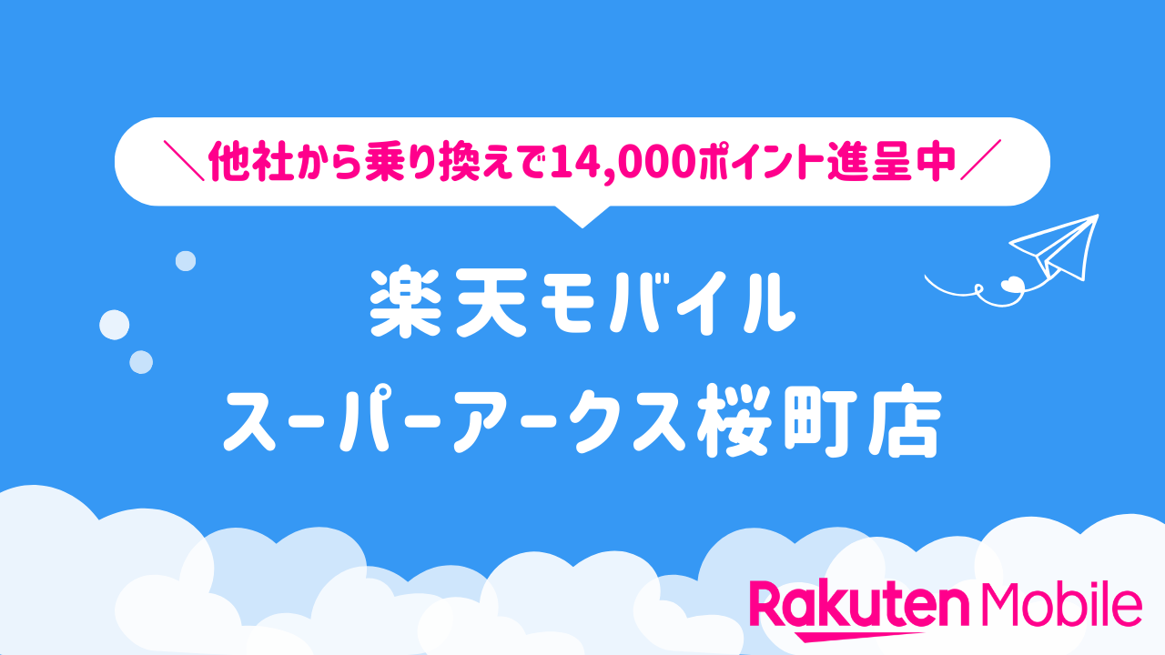 楽天モバイル スーパーアークス桜町店の店舗情報をわかりやすく整理しています。他社から乗り換えで14,000ポイントをゲットできるキャンペーンや、店舗限定で利用できる特典などの情報も合わせてご紹介いたします。