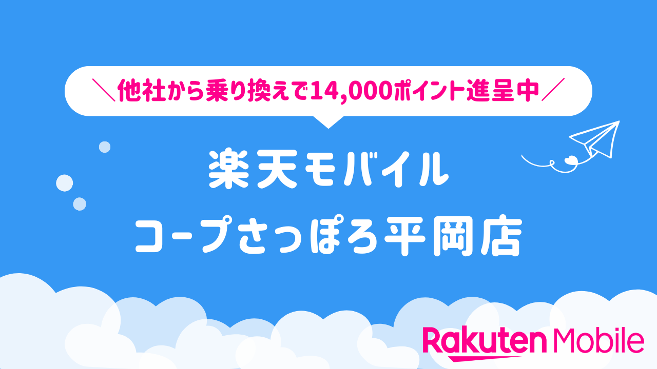 楽天モバイル コープさっぽろ平岡店の店舗情報をわかりやすく整理しています。他社から乗り換えで14,000ポイントをゲットできるキャンペーンや、店舗限定で利用できる特典などの情報も合わせてご紹介いたします。