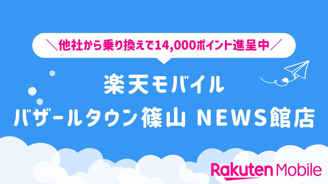 楽天モバイル バザールタウン篠山 NEWS館店 – 他社から乗り換えで14,000ポイント進呈中!