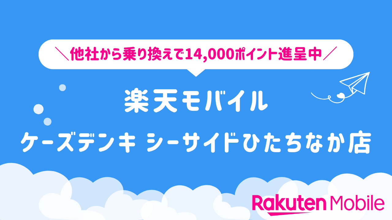 楽天モバイル ケーズデンキ シーサイドひたちなか店の店舗情報をわかりやすく整理しています。他社から乗り換えで14,000ポイントをゲットできるキャンペーンや、店舗限定で利用できる特典などの情報も合わせてご紹介いたします。