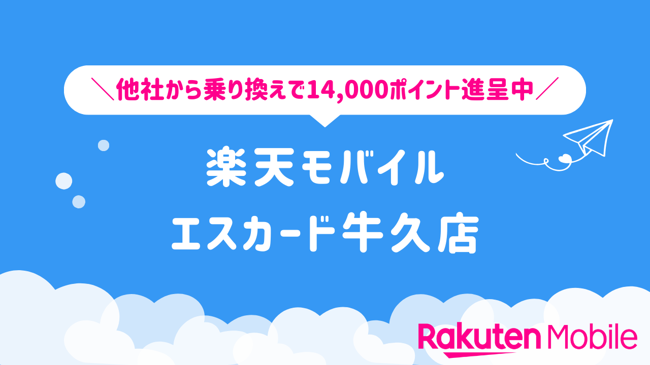 楽天モバイル エスカード牛久店の店舗情報をわかりやすく整理しています。他社から乗り換えで14,000ポイントをゲットできるキャンペーンや、店舗限定で利用できる特典などの情報も合わせてご紹介いたします。