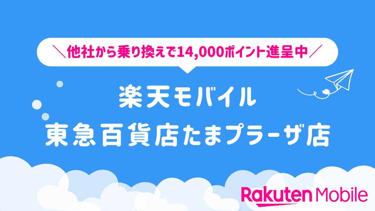楽天モバイル 東急百貨店たまプラーザ店の店舗情報をわかりやすく整理しています。他社から乗り換えで14,000ポイントをゲットできるキャンペーンや、店舗限定で利用できる特典などの情報も合わせてご紹介いたします。