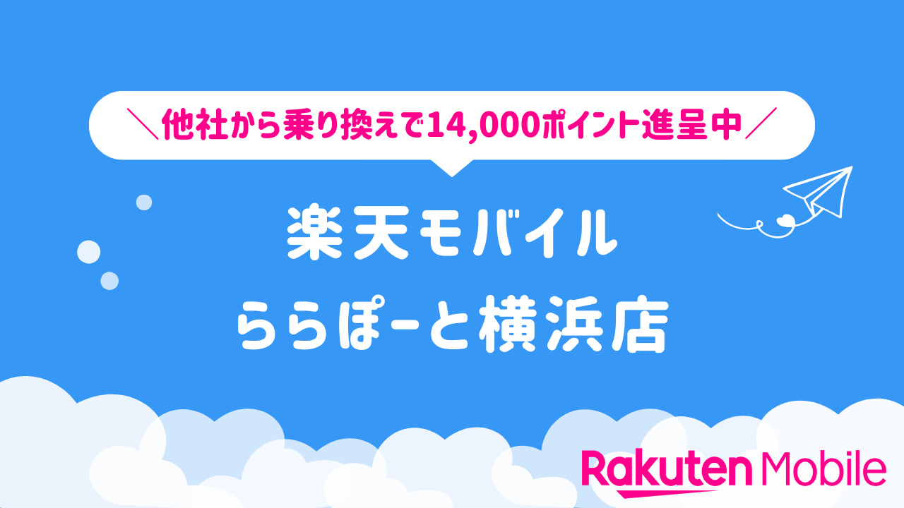 楽天モバイル ららぽーと横浜店の店舗情報をわかりやすく整理しています。他社から乗り換えで14,000ポイントをゲットできるキャンペーンや、店舗限定で利用できる特典などの情報も合わせてご紹介いたします。