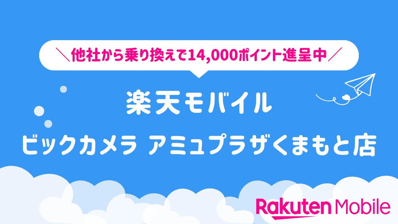 楽天モバイル ビックカメラ アミュプラザくまもと店 – 他社から乗り換えで14,000ポイント進呈中!