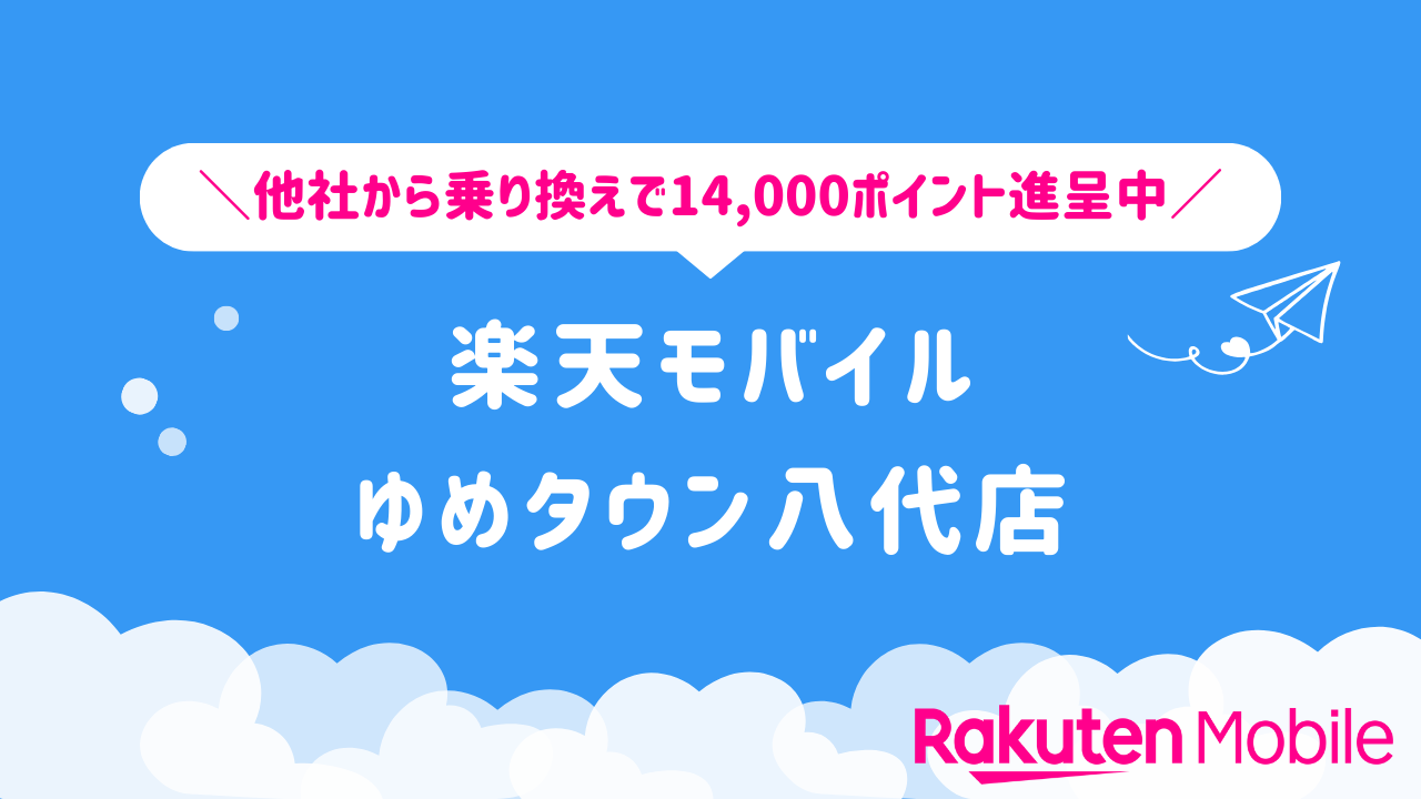 楽天モバイル ゆめタウン八代店の店舗情報をわかりやすく整理しています。他社から乗り換えで14,000ポイントをゲットできるキャンペーンや、店舗限定で利用できる特典などの情報も合わせてご紹介いたします。