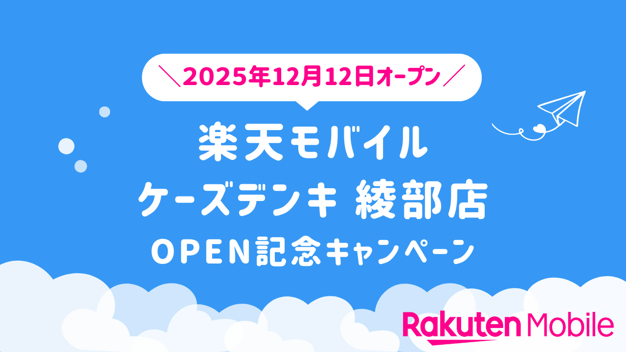 2025年12月12日(金)、京都府綾部市に新たに「楽天モバイル ケーズデンキ 綾部店」がオープン。今なら従業員紹介キャンペーンを利用すれば他社から乗り換えで14,000ポイントも獲得できます。また、楽天モバイルの新規店舗では開店から60日間限定のOPEN記念キャンペーンを実施しています。ショップ来訪前に要チェックです。(※従業員紹介キャンペーンは開店から60日以降もご利用できます。)