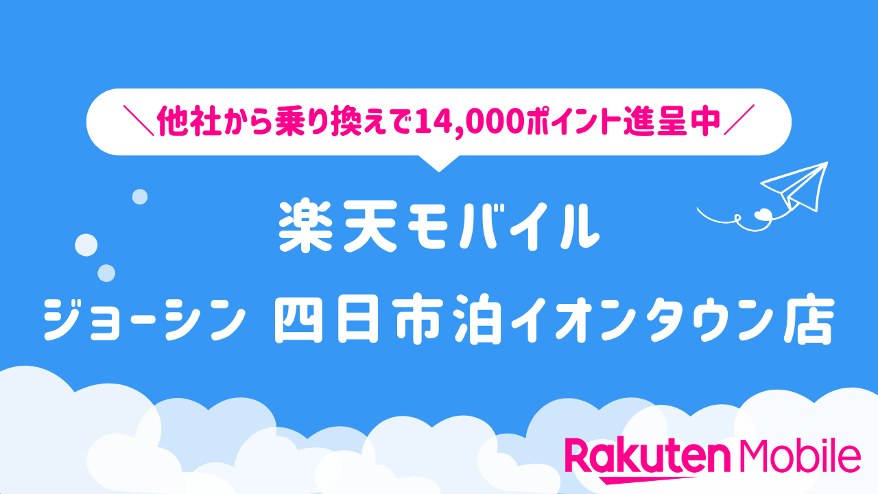 楽天モバイル ジョーシン 四日市泊イオンタウン店の店舗情報をわかりやすく整理しています。他社から乗り換えで14,000ポイントをゲットできるキャンペーンや、店舗限定で利用できる特典などの情報も合わせてご紹介いたします。