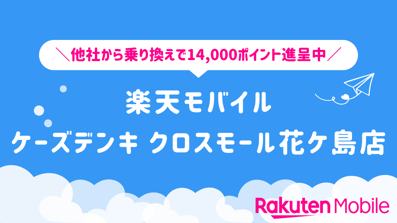 楽天モバイル ケーズデンキ クロスモール花ケ島店の店舗情報をわかりやすく整理しています。他社から乗り換えで14,000ポイントをゲットできるキャンペーンや、店舗限定で利用できる特典などの情報も合わせてご紹介いたします。