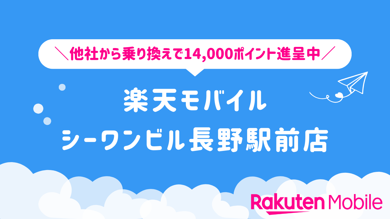 楽天モバイル シーワンビル長野駅前店の店舗情報をわかりやすく整理しています。他社から乗り換えで14,000ポイントをゲットできるキャンペーンや、店舗限定で利用できる特典などの情報も合わせてご紹介いたします。