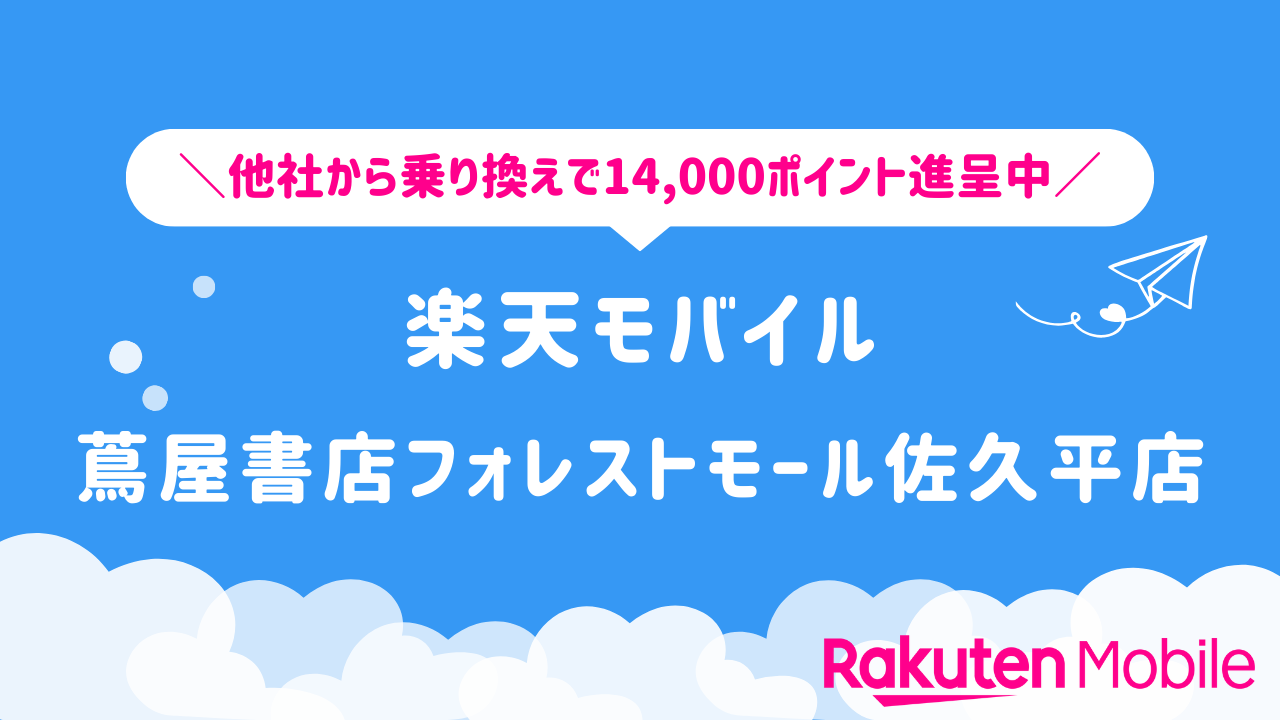 楽天モバイル 蔦屋書店フォレストモール佐久平店の店舗情報をわかりやすく整理しています。他社から乗り換えで14,000ポイントをゲットできるキャンペーンや、店舗限定で利用できる特典などの情報も合わせてご紹介いたします。