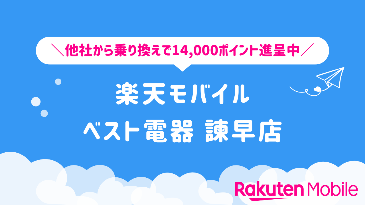 楽天モバイル ベスト電器 諫早店の店舗情報をわかりやすく整理しています。他社から乗り換えで14,000ポイントをゲットできるキャンペーンや、店舗限定で利用できる特典などの情報も合わせてご紹介いたします。