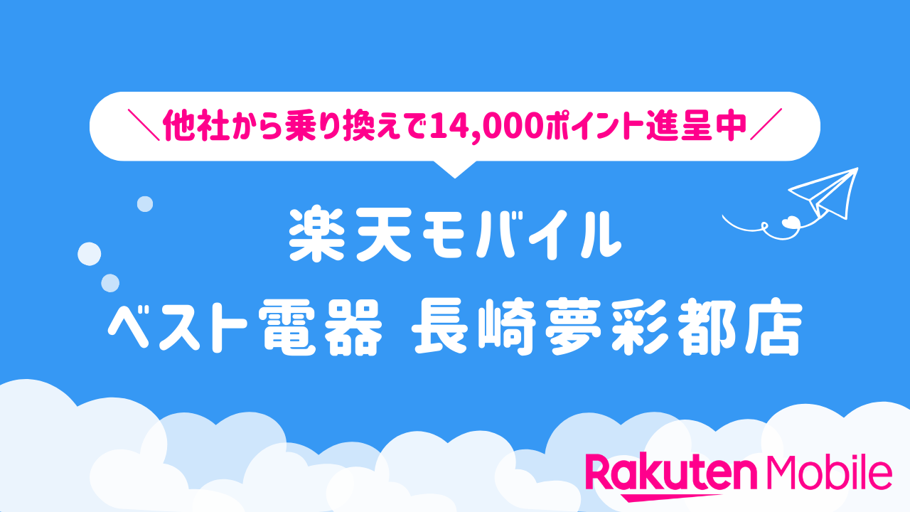 楽天モバイル ベスト電器 長崎夢彩都店の店舗情報をわかりやすく整理しています。他社から乗り換えで14,000ポイントをゲットできるキャンペーンや、店舗限定で利用できる特典などの情報も合わせてご紹介いたします。