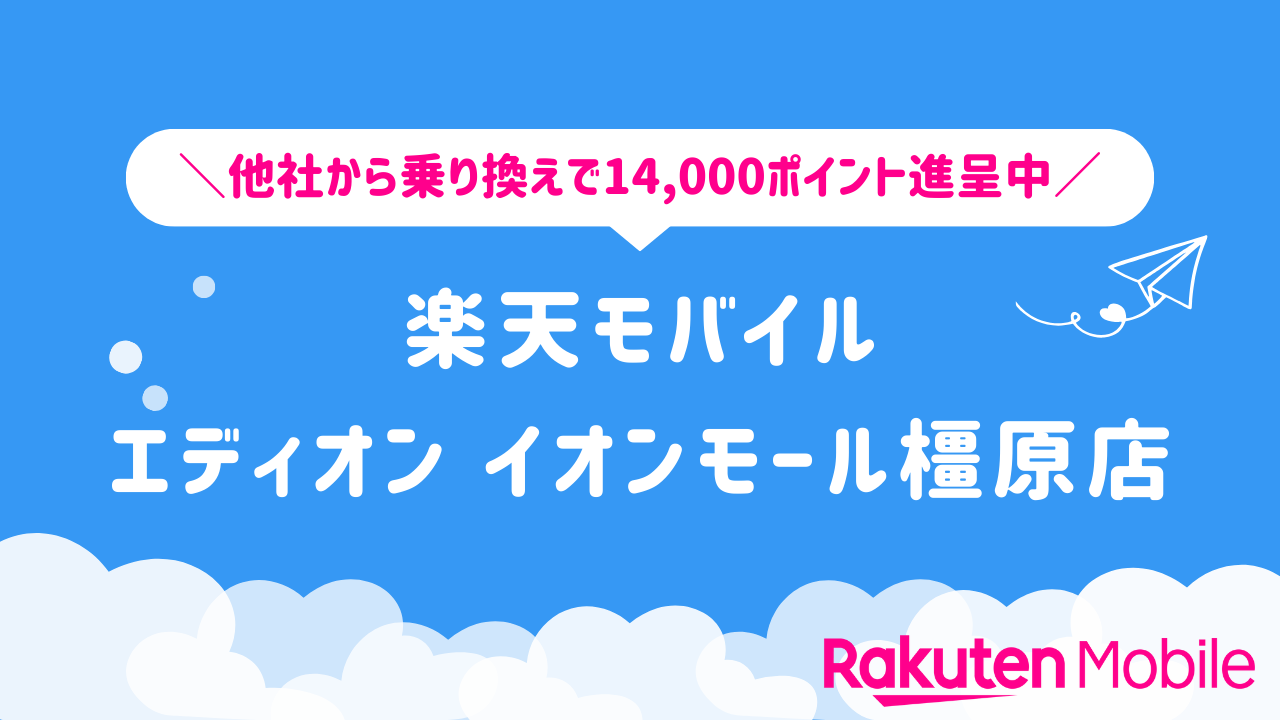 楽天モバイル エディオン イオンモール橿原店 – 他社から乗り換えで14,000ポイント進呈中!