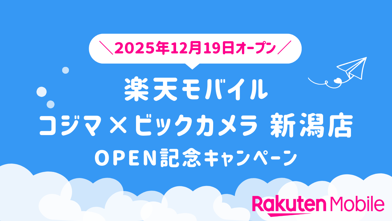 2025年12月19日(金)、新潟県新潟市中央区に新たに「楽天モバイル コジマ×ビックカメラ 新潟店」がオープン。今なら従業員紹介キャンペーンを利用すれば他社から乗り換えで14,000ポイントも獲得できます。また、楽天モバイルの新規店舗では開店から60日間限定のOPEN記念キャンペーンを実施しています。ショップ来訪前に要チェックです。(※従業員紹介キャンペーンは開店から60日以降もご利用できます。)