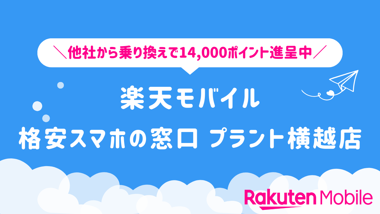 楽天モバイル 格安スマホの窓口 プラント横越店 – 他社から乗り換えで14,000ポイント進呈中!