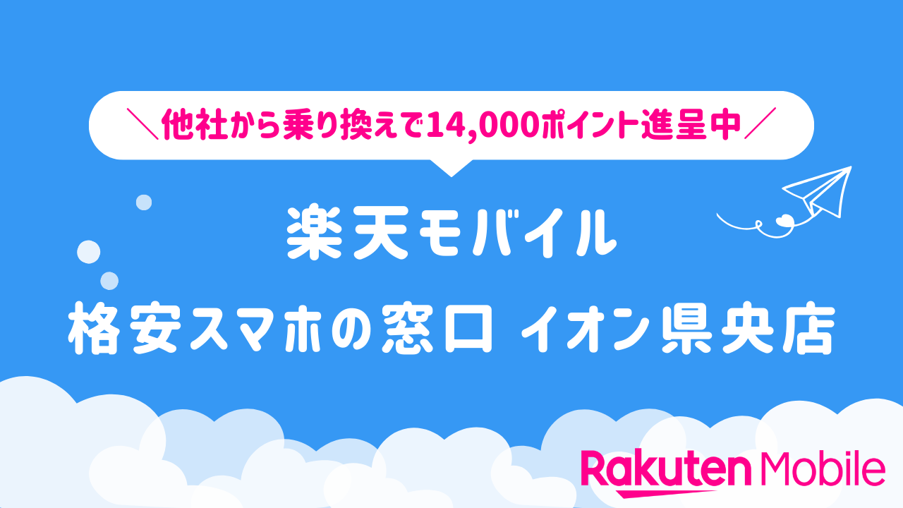 楽天モバイル 格安スマホの窓口 イオン県央店 – 他社から乗り換えで14,000ポイント進呈中!
