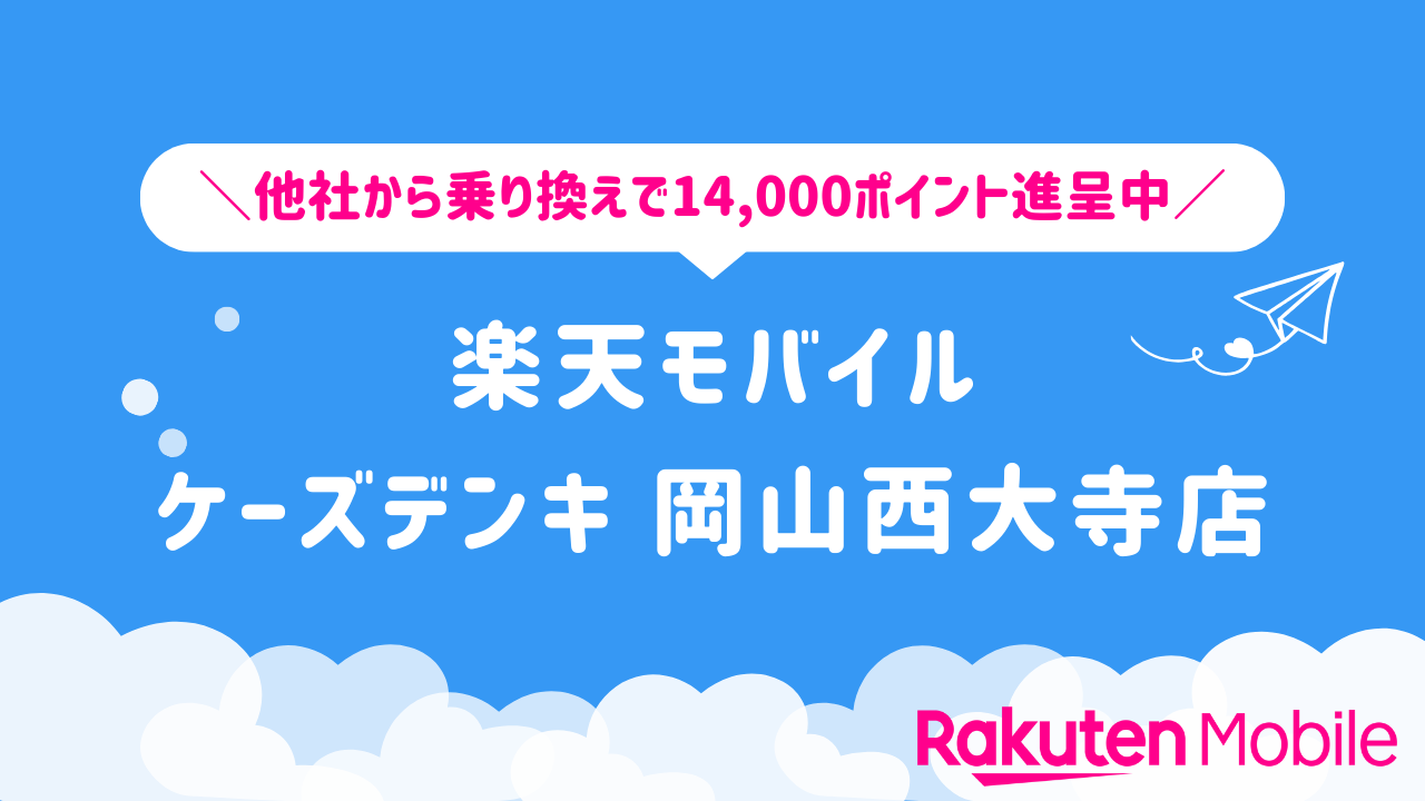 楽天モバイル ケーズデンキ 岡山西大寺店の店舗情報をわかりやすく整理しています。他社から乗り換えで14,000ポイントをゲットできるキャンペーンや、店舗限定で利用できる特典などの情報も合わせてご紹介いたします。