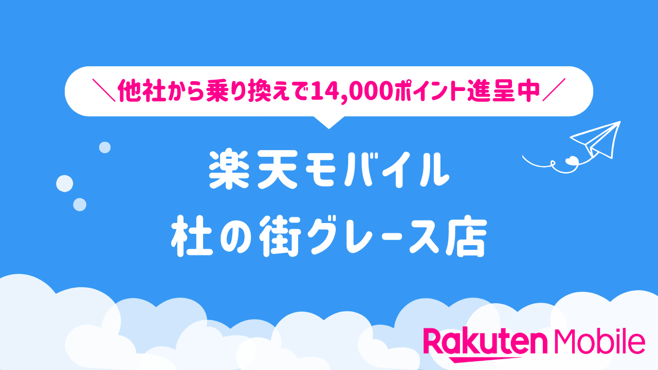 楽天モバイル 杜の街グレース店の店舗情報をわかりやすく整理しています。他社から乗り換えで14,000ポイントをゲットできるキャンペーンや、店舗限定で利用できる特典などの情報も合わせてご紹介いたします。