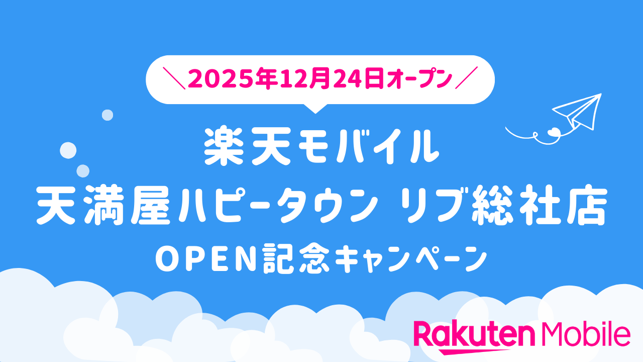 2025年12月24日(水)、岡山県総社市に新たに「楽天モバイル 天満屋ハピータウン リブ総社店」がオープン。今なら従業員紹介キャンペーンを利用すれば他社から乗り換えで14,000ポイントも獲得できます。また、楽天モバイルの新規店舗では開店から60日間限定のOPEN記念キャンペーンを実施しています。ショップ来訪前に要チェックです。(※従業員紹介キャンペーンは開店から60日以降もご利用できます。)
