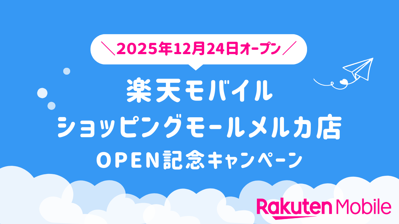 楽天モバイル ショッピングモールメルカ店OPEN記念。最大27,000円相当ゲットのチャンス!<12月24日(水)オープン>