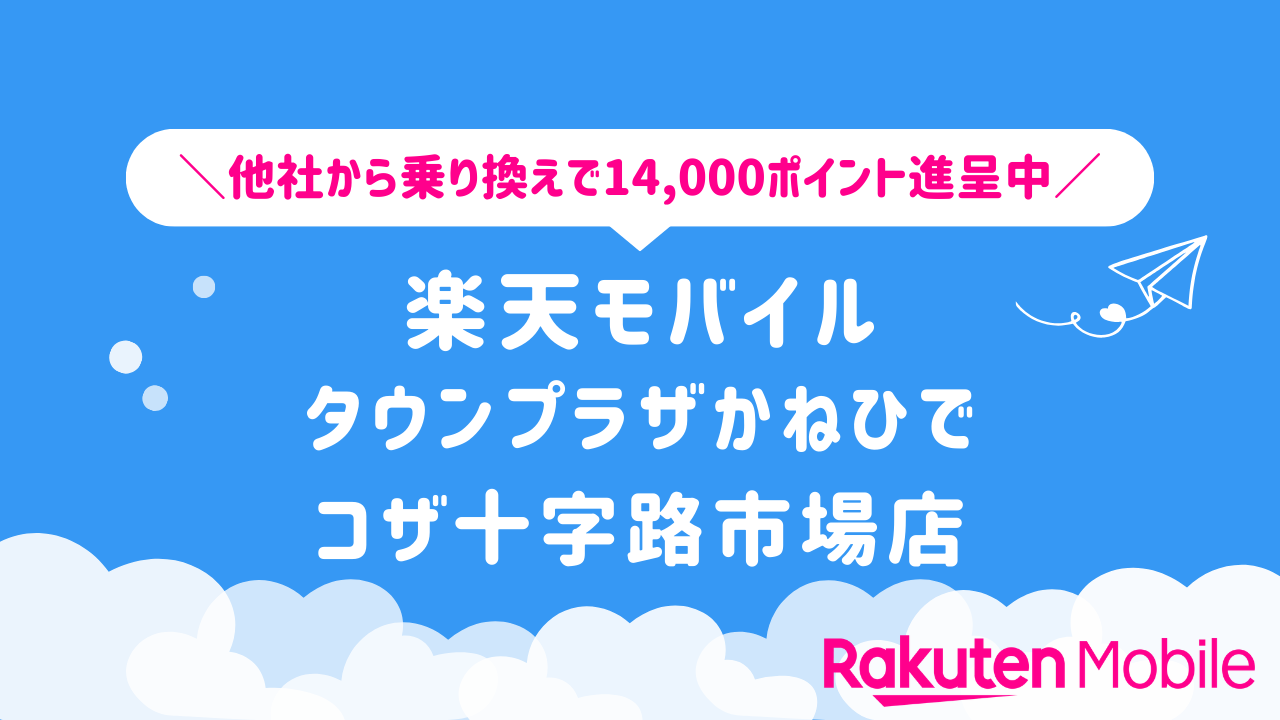 楽天モバイル タウンプラザかねひでコザ十字路市場店 – 他社から乗り換えで14,000ポイント進呈中!