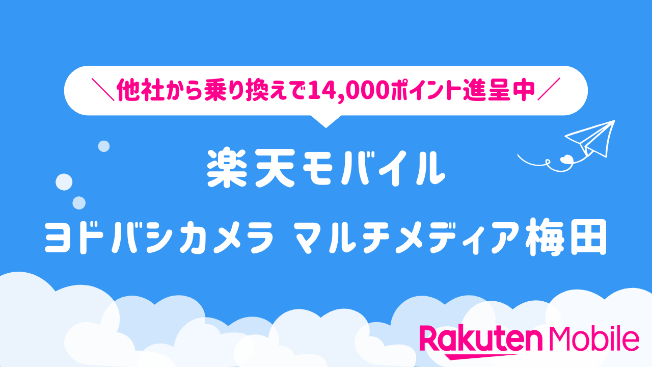 楽天モバイル ヨドバシカメラ マルチメディア梅田の店舗情報をわかりやすく整理しています。他社から乗り換えで14,000ポイントをゲットできるキャンペーンや、店舗限定で利用できる特典などの情報も合わせてご紹介いたします。