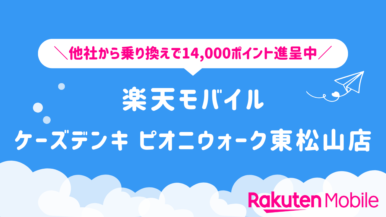 楽天モバイル ケーズデンキ ピオニウォーク東松山店の店舗情報をわかりやすく整理しています。他社から乗り換えで14,000ポイントをゲットできるキャンペーンや、店舗限定で利用できる特典などの情報も合わせてご紹介いたします。