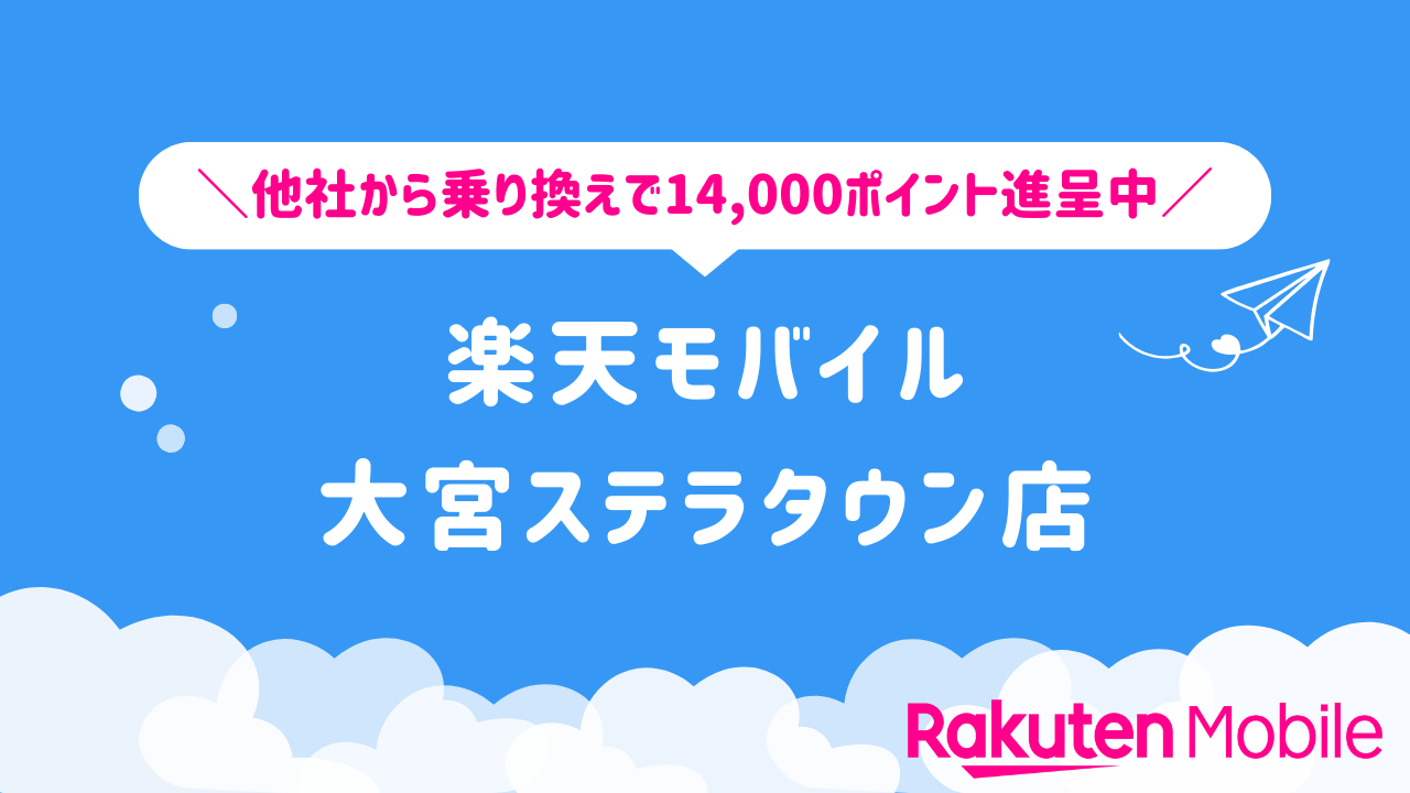 楽天モバイル 大宮ステラタウン店の店舗情報をわかりやすく整理しています。他社から乗り換えで14,000ポイントをゲットできるキャンペーンや、店舗限定で利用できる特典などの情報も合わせてご紹介いたします。