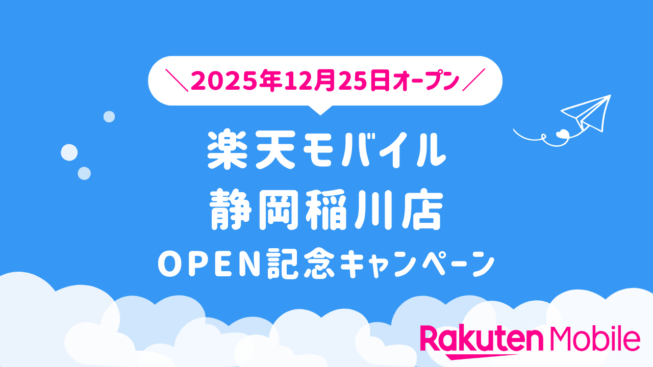 楽天モバイル 静岡稲川店OPEN記念。最大27,000円相当ゲットのチャンス!<12月25日(木)オープン>