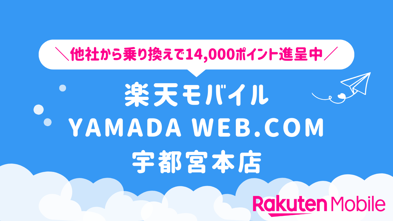 楽天モバイル YAMADA web.com 宇都宮本店の店舗情報をわかりやすく整理しています。他社から乗り換えで14,000ポイントをゲットできるキャンペーンや、店舗限定で利用できる特典などの情報も合わせてご紹介いたします。