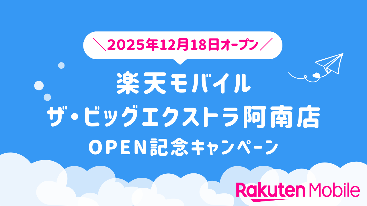 2025年12月18日(木)、徳島県阿南市に新たに「楽天モバイル ザ・ビッグエクストラ阿南店」がオープン。今なら従業員紹介キャンペーンを利用すれば他社から乗り換えで14,000ポイントも獲得できます。また、楽天モバイルの新規店舗では開店から60日間限定のOPEN記念キャンペーンを実施しています。ショップ来訪前に要チェックです。(※従業員紹介キャンペーンは開店から60日以降もご利用できます。