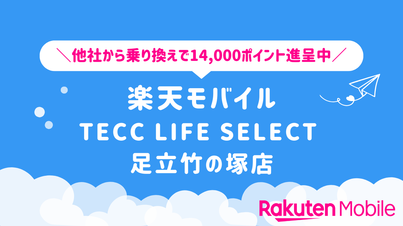 楽天モバイル Tecc LIFE SELECT 足立竹の塚店 – 他社から乗り換えで14,000ポイント進呈中!