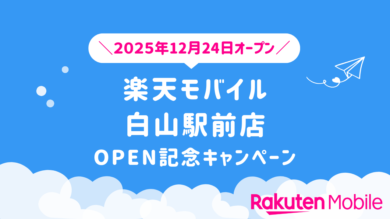 楽天モバイル 白山駅前店OPEN記念。最大27,000円相当ゲットのチャンス!<12月24日(水)オープン>