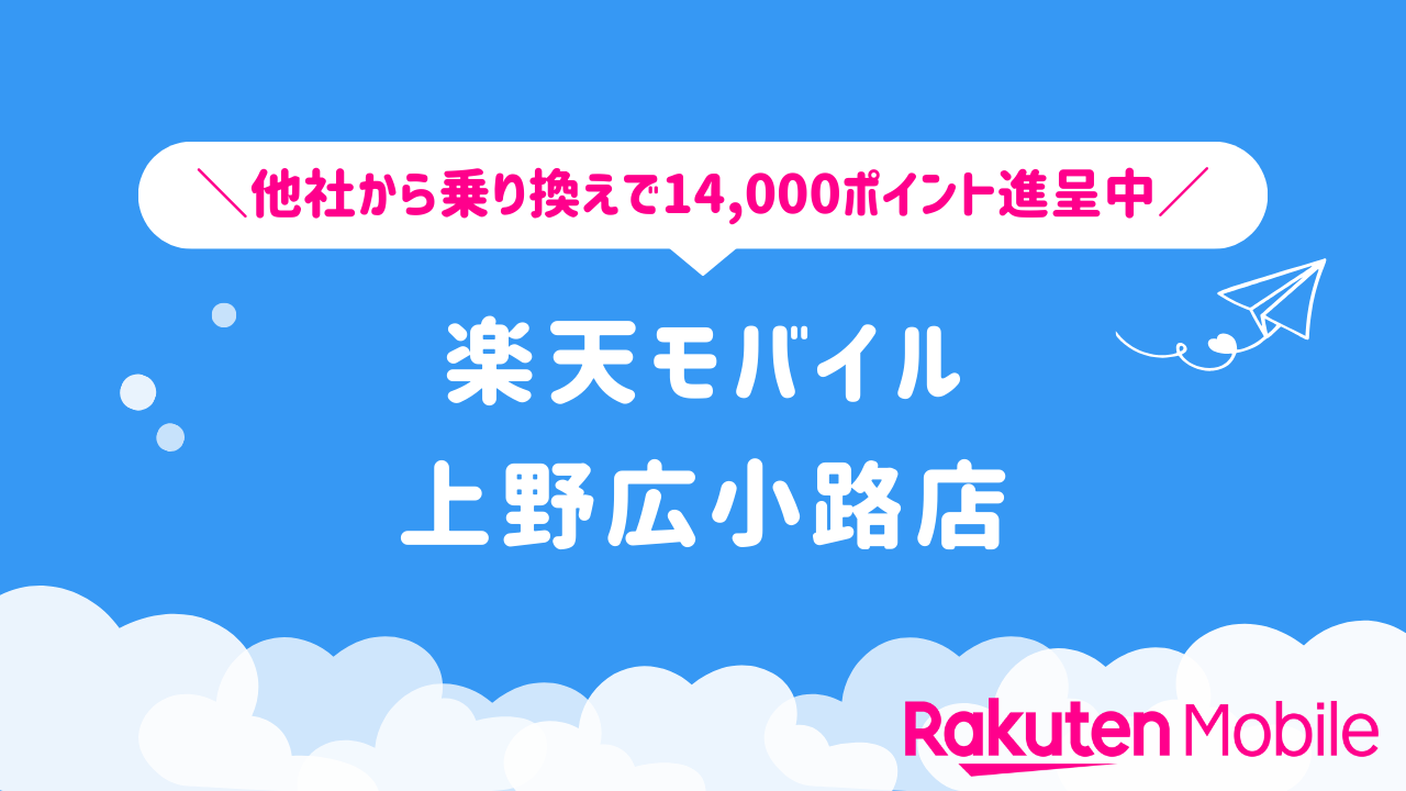楽天モバイル 上野広小路店 – 他社から乗り換えで14,000ポイント進呈中!