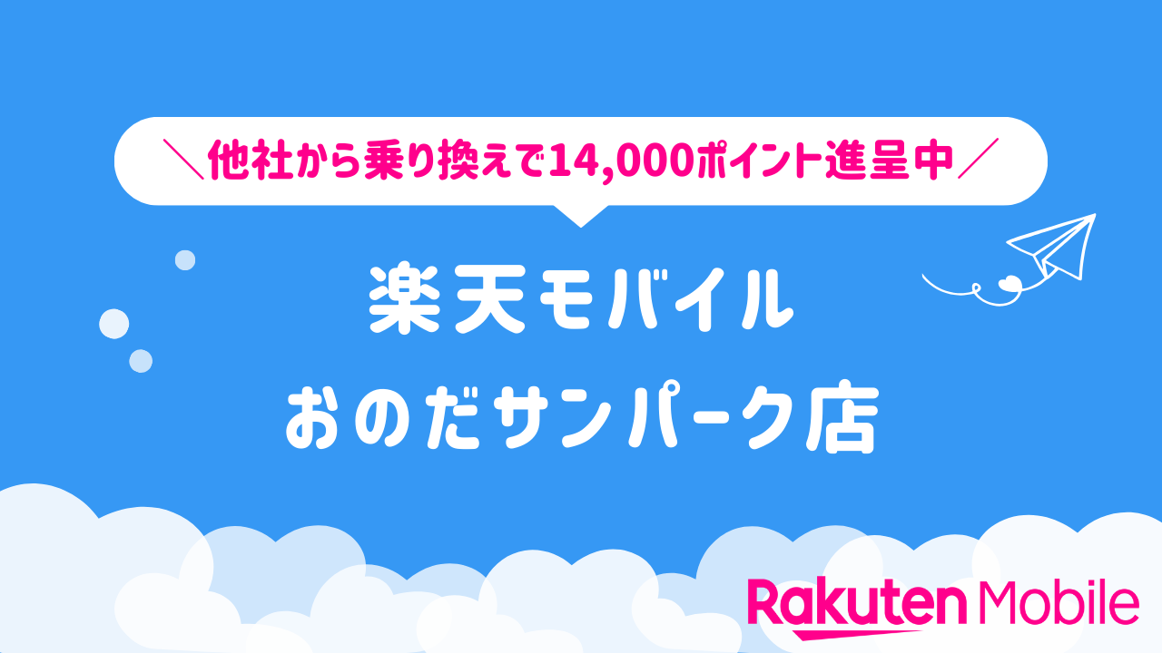 楽天モバイル おのだサンパーク店 – 他社から乗り換えで14,000ポイント進呈中!