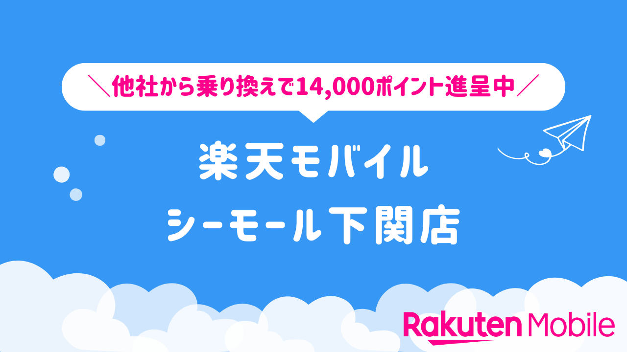 楽天モバイル シーモール下関店の店舗情報をわかりやすく整理しています。他社から乗り換えで14,000ポイントをゲットできるキャンペーンや、店舗限定で利用できる特典などの情報も合わせてご紹介いたします。
