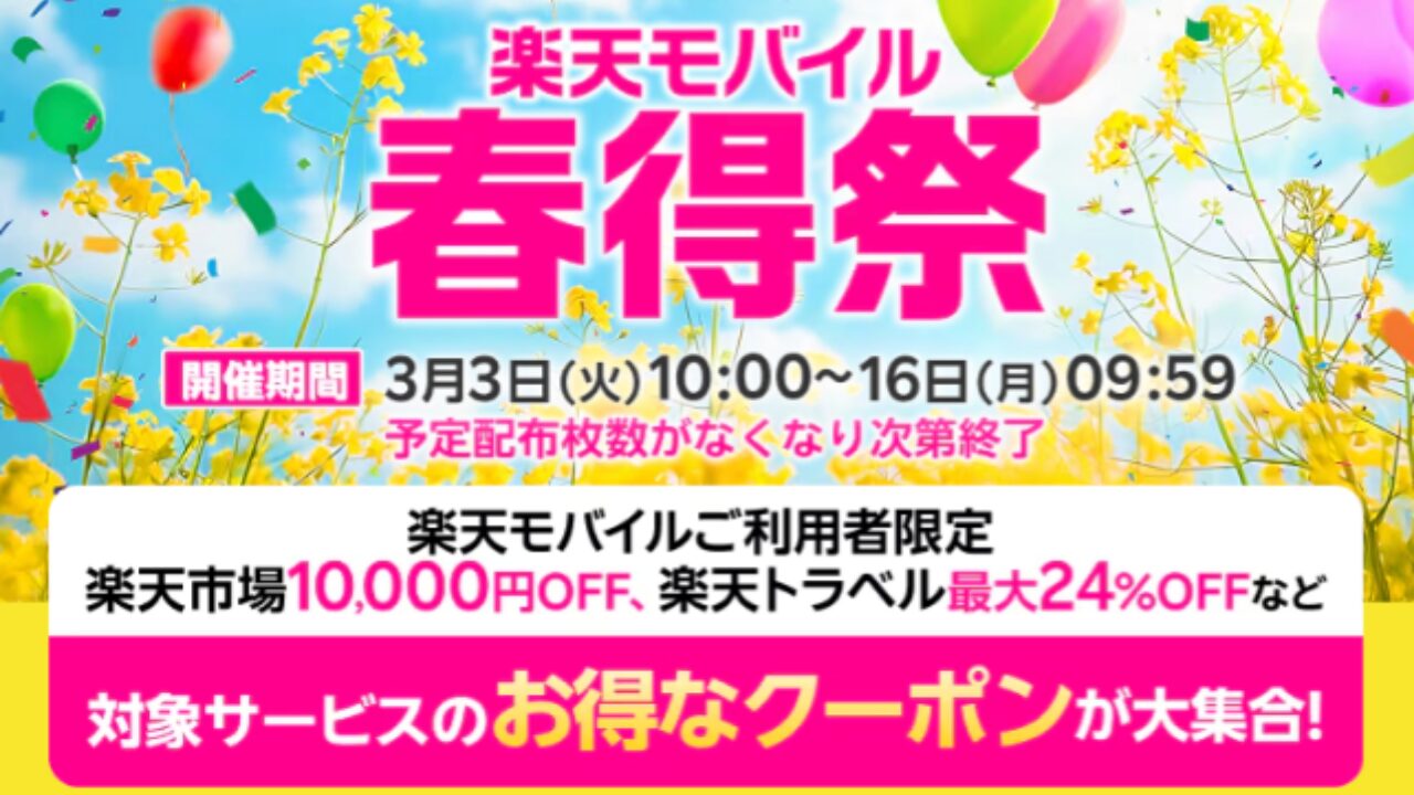 楽天モバイルが2026年3月3日より、グループ横断大型キャンペーン「楽天モバイル 春得祭」を開始しました。