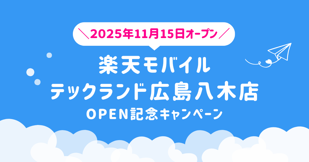 2025年11月15日(土)、広島県広島市に新たに「楽天モバイル テックランド広島八木店」がオープンします。これを記念して、開店から60日間限定のOPEN記念キャンペーンが実施されます。