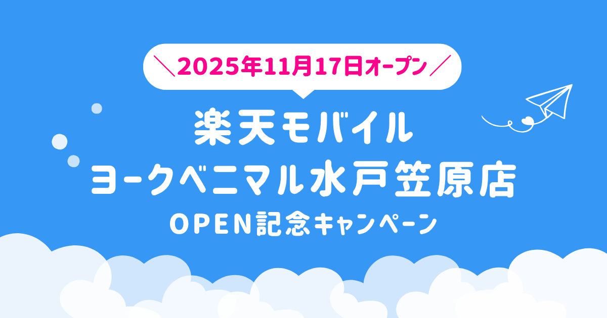 2025年11月17日(月)、茨城県水戸市に新たに「楽天モバイル ヨークベニマル水戸笠原店」がオープン。楽天モバイルの新規店舗では、開店から60日間限定のOPEN記念キャンペーンを実施しています。