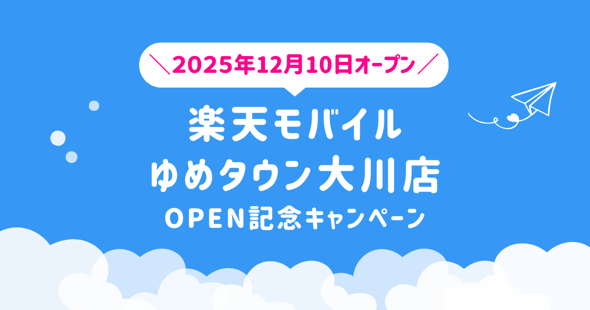 2025年12月10日(水)、福岡県大川市に新たに「楽天モバイル ゆめタウン大川店」がオープン。楽天モバイルの新規店舗では、開店から60日間限定のOPEN記念キャンペーンを実施しています。